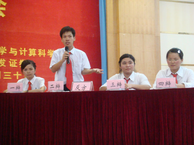 当晚首先进行的是辩论赛总决赛,由商学院副院长夏青副教授、法政学院刘鑫淼副教授、博雅教育中心韦星副教授担任评委。正方07数本(1)(2)班与反方08数本(6)班围绕“发展地区经济关键是靠人才优势还是地理优势”这个辩题展开激烈辩论。开篇陈词环节的慷慨激昂,盘问环节与自由人辩论环节的争锋相对、步步紧逼,自由辩论环节的精辟犀利,让现场气氛逐步升温,观众们也随着辩论的进行紧张起来。经过激烈的辩论后,反方08数本(6)班赢得比赛,其三辨黄丽渝同学摘得最佳辩手桂冠。在随后的点评中,刘鑫淼副教授指出,此次辩题有现实感,辩手们传达给观众的知识量是巨大的,并且辨出了水平,辨出了风采。美中不足的是双方正面对抗不多,希望以后注意加强改善。