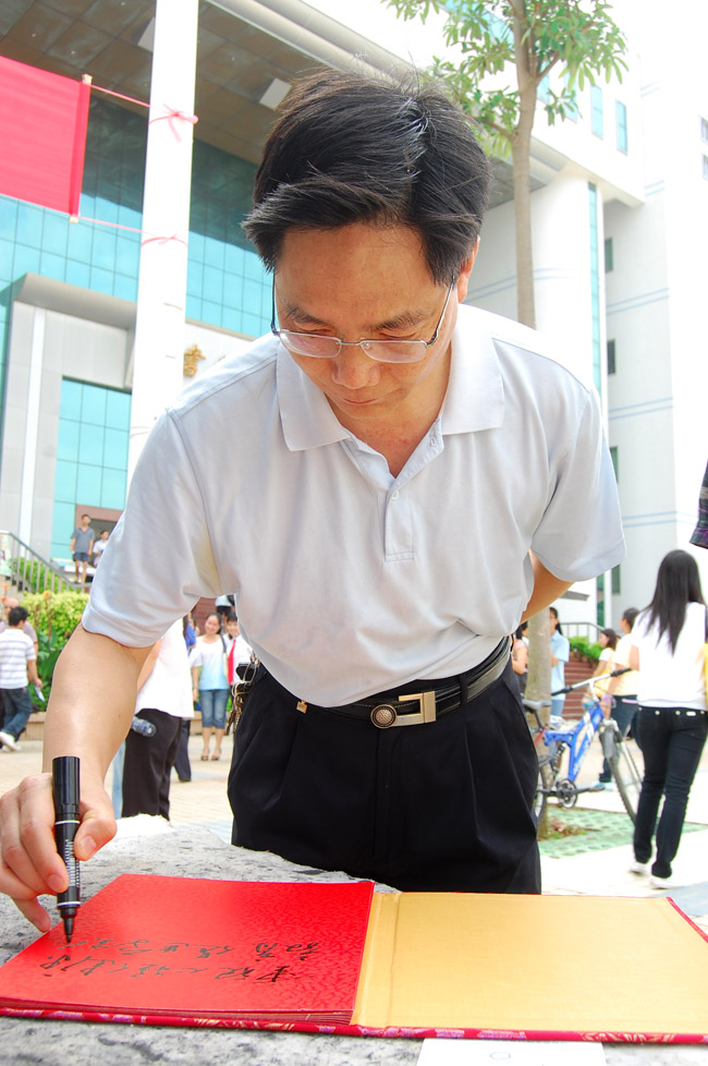湛师新闻网5月31日讯 5月29号上午,由我校学生处主办,心理咨询中心承办,心理健康教育协会协办的“扬帆心海,健康同行”第七届“5.25”现场心理咨询活动在雷阳广场举行。教科院党委王列盈书记、张旭东院长,学生处赫云鹏副处长参加了本次活动。王列盈书记应心理咨询中心和心协师生的共同邀请,为活动题辞“重视心理健康教育,促进学生全面发展”。