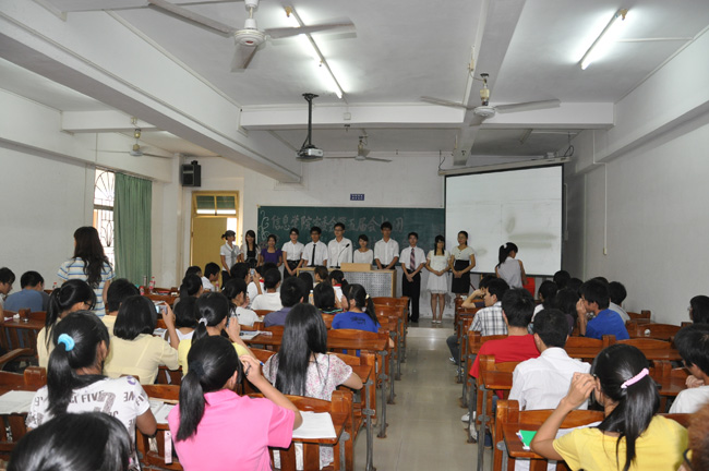 会议在一段DV中拉开帷幕,DV展现了宣委会各成员的风采。接着,由信息学院第四届宣委会会长李银妹对宣委上一年的工作进行总结与汇报。接下来,会长团各候选人按照抽签的顺序进行限时6分钟的演讲。各位候选人分别从自我介绍,在宣委工作一年以来的感受,对自己工作的设想,以及如何提高宣委的技术水平等方面进行了详细的叙述。