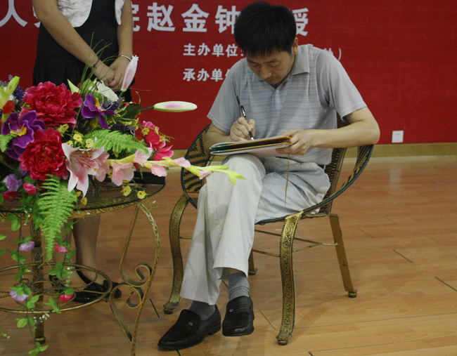 伴着一段抒情音,访谈通过PPT的形式展示了赵教授的简历。在访谈过程中,赵教授讲述了他富有色彩的人生历程。文革末期的童年虽然很艰苦,但是他在艰苦中快乐着,而这也正好为他以后的写诗生涯播下了种子。诗歌源于生活,他希望同学们在创作诗歌的时候“可以学习口语,但不要吹口水”,同时“写作,要有感而发,情由心生”,只有这样的作品才能够高于生活。在讲到当代诗歌创作时,赵教授简述了当代诗歌的概况,他认为有两种主要的创作形式:一、传统的媒体诗歌 ,如报纸、广播 二、网络诗歌,如网站、博客。面对多形式的诗歌创作,赵教授提出诗歌的发展要“多元化发展,要百花齐放”。