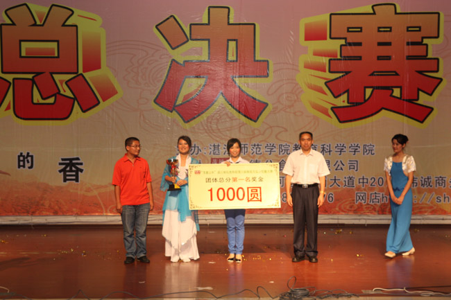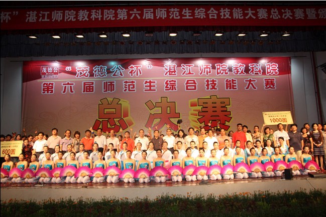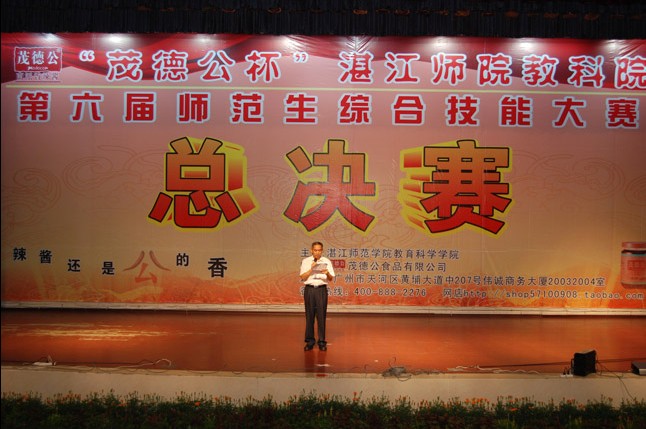 湛师新闻网5月28日讯 为进一步提高师范生综合技能,深入贯彻科学发展观,增强就业竞争力。5月26日晚上,教育科学学院主办的“茂德公杯”第六届师范生综合技能大赛总决赛在音乐厅隆重举行,一场彰显新时代教师形象的视听盛宴激情上演。刘周堂副院长、学校各职能部门领导、茂德公食品有限公司代表和湛江教育局领导以及湛江市部分中小学领导出席现场。湛江教育局艺术教研员李小娥老师、湛江市艺术学校舞蹈科王天云科长和我校音乐学院孙建华副院长担任大赛评委。
