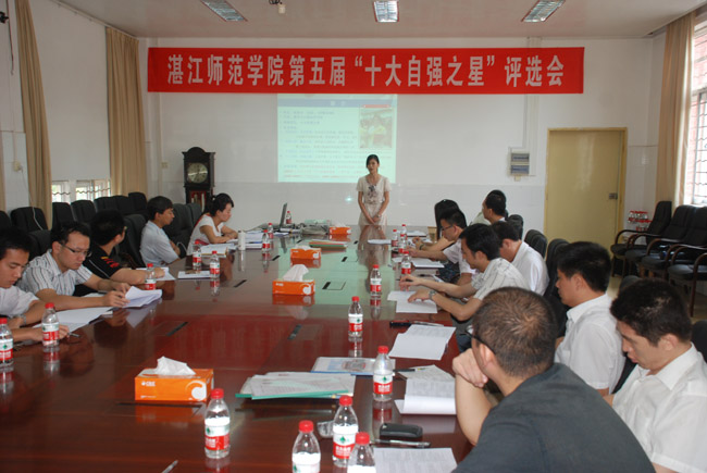 湛师新闻网5月27日讯 为深入开展大学生自强教育,树立自强不息的优秀贫困生典型,激励更多贫困生克服困难、奋发成才,今天上午,我校第五届“十大自强之星”评选会在紫荆楼三号会议室召开,学生处黄达海处长、赫云鹏副处长和各二级学院负责勤工的辅导员出任了评委。会议由赫云鹏副处长主持。