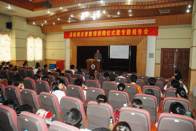 罗海鸥院长在致辞中,对75岁高龄的潘毓刚教授不远万里、不辞劳苦,莅临我校指导人才培养和学科建设,致以诚挚的谢意和崇高的敬意。罗院长动情地介绍说,长期以来,潘教授在对美国教育事业做出不懈努力的同时,对祖国教育事业的发展也付出了大量心血,为我国量子化学的长足发展作出了杰出的贡献。潘教授一直极为关心和重视培养中国留学生。当年,中国学生到波士顿地区读书、留学时,潘教授亲自前往机场迎接并先将学子带回自己的家中歇息;故潘教授的家被誉为“中国留学生之家”。潘教授勤奋好学,天资聪颖,被台湾著名作家李敖称为“最具有人文气息的华人科学家”。