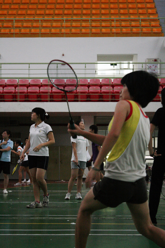 比赛分四个小组进行。单打比赛的选手们表现得灵思敏捷,而在双打比赛中,选手们配合默契,队友间相互激励打气,加上教练现场指导的细致,后勤工作积极到位,同学们深刻感受到集体力量的强大,欢呼声、加油声不断,现场气氛十分热烈。比赛一直持续到当天下午,其中数科院和法政学院争夺冠军。反手击球、跳扣杀球、后场大力杀球、吊球,双方队员实力相当,互不相让。最后,法政学院以3:2的局数摘得桂冠,数科院荣获亚军,教科院、化学院分别获得第三、第四名。