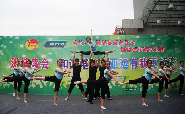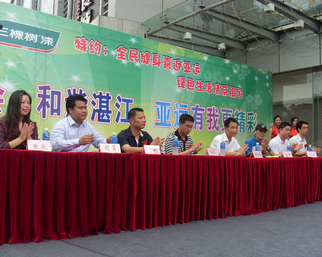 湛师新闻网5月24日讯 昨天上午,数科院于嘉信茂广场举办“全民健身喜迎亚运,绿色生活情系祖国”的系列活动。本活动得到了三棵树涂料股份有限公司的大力支持。校团委李发武副书记,数科院党委唐洪浪副书记,音乐学院党委黄增副书记,赤坎区团委吴启智副书记,湛师基础教育学院团委庞杰书记,三棵树涂料股份有限公司胡翼总经理,嘉信茂广场朱志秋先生,以及数科院团委黄展书记出席了本次活动。