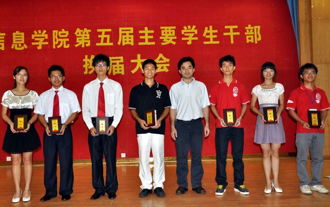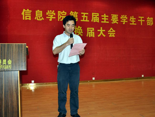 湛师新闻网5月24日讯 昨晚,信息学院在弘雷楼311教室举行第五届主要学生干部换届大会。信息学院党委副书记林荣新,辅导员谢统年老师,岳喜凤老师,张立敏老师等参加了换届大会。