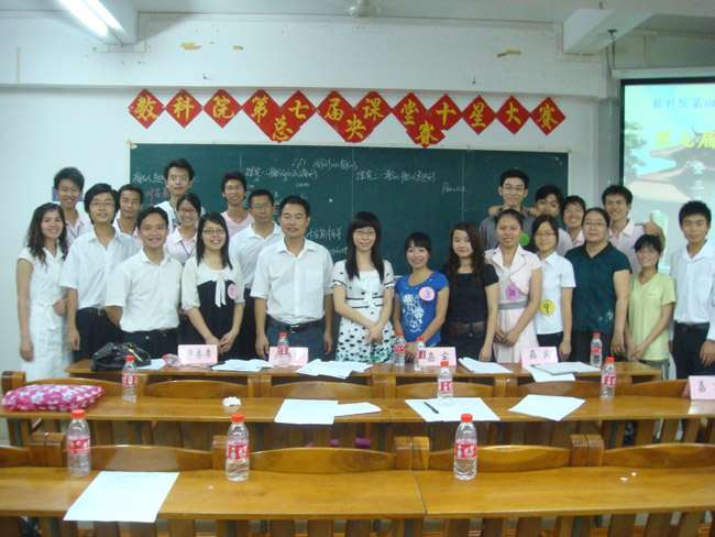 湛师新闻网5月23日讯 昨晚,数科院第七届“课堂十星”大赛总决赛于弘雷楼305教室举行。本次比赛为第四届数学文化节系列活动之一。担任比赛的评委有数科院张映姜副教授、米玉珍副教授和赵秋海老师。数科院党委唐洪浪副书记观看了比赛。