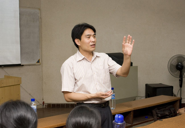 晚上的交流会,吸引了06、07级众多制药专业的同学参加。首先,万来鸿总监通过公司制作的DV向同学们展现了同德药业的企业风采、产品种类以及发展前景。接着,万总监通过PPT从企业的主要员工、基本情况、发展理念以及产品的构成和研发等方面展示了同德药业独特的魅力。公司资源拓展部经理陈伟新则向在座的同学们重点介绍了同德药业的企业文化理念。他以通俗的语言,结合自身的经历,向同学们提供了一些关于大学生就业的建议,赢得满堂喝彩。
