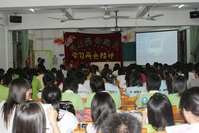 湛师新闻网5月20日讯 5月15日晚,由校瞭望学社和法政学院09级党支部联合主办的,以“关注两会热点,学习两会精神”为主题的知识竞赛在弘雷楼503教室举行。法政学院刘明贤博士,辅导员赖彩虹老师以及各社团代表观看比赛。