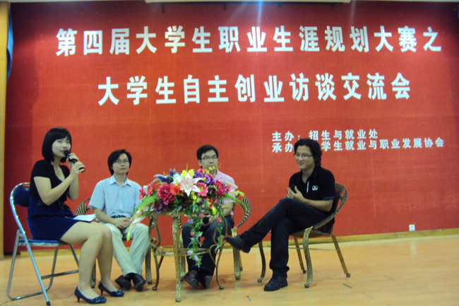湛师新闻网5月19日讯 16日晚,由招生与就业处主办,大学生就业与职业发展协会承办,第四届大学生职业生涯规划大赛系列讲座之大学生自主创业访谈交流会,在弘雷楼311教室举行。中国移动广东公司赤坎分公司服务策划主管王勇、湛江市“乐之城”琴行总经理邱国洪、湛江市美好广告有限公司总经理林大专担任了交流会的主讲嘉宾,招生与就业处王雄艺科长出席了会议。