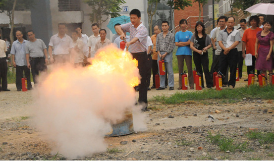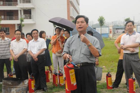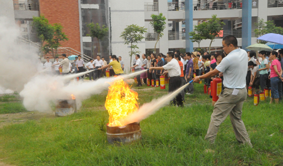 随后,保卫处人员向参加演练的人员,现场进行了灭火操作演示。