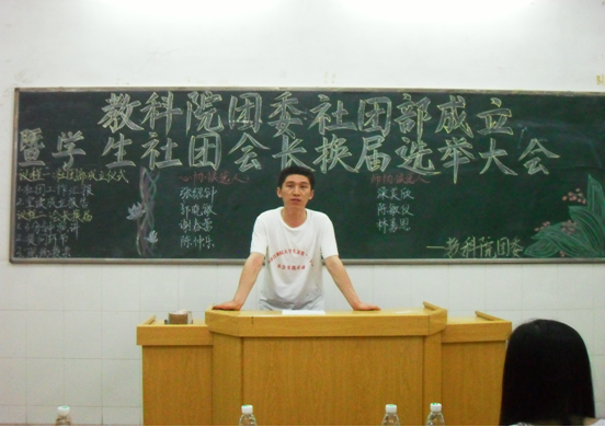 湛师新闻网5月19日讯 5月16日,教科院召开团委社团部成立仪式暨学生社团会长换届选举大会。教科院辅导员魏珂老师,该院团委学生干部等参加了会议。
