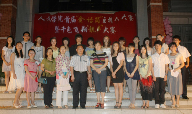 湛师新闻网5月17日讯 昨晚,由人文学院千色飞翔网络电台承办的首届文学艺术节之“金话筒”主持人大赛暨千色飞翔“靓声”大赛在综合楼A栋前举行。人文学院党委谢应明书记、辅导员黄河老师出席活动。人文学院国家级普通话测试员刘瑞芳教授、省级普通话测试员陈宗林副教授、千色飞翔指导老师赵敏老师等担任评委。