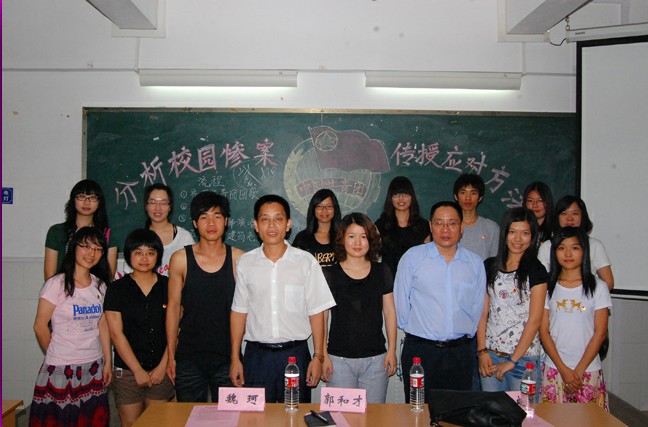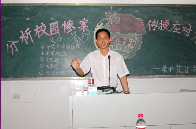 湛师新闻网5月15日讯 昨晚,教科院团委在燕雷楼503教室举行了主题为“分析校园惨案,传授应对方法”的精品团活动。教科院党委郭和才副书记、卢建筠博士、石梦良老师出席了活动。