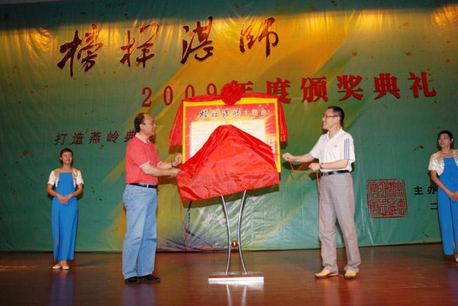 湛师新闻网5月11日讯 星光熠熠耀雷阳,学子榜样展风采。昨天晚上,由学生工作部主办的“榜样湛师”2009年度颁奖典礼在音乐厅举行。学校党委梁英书记、张兰英副书记、胡克伟副书记,学生工作指导委员会成员,广东省大学生心理健康委员会副秘书长、华南理工大学心理咨询中心主任黄建榕教授与湛江市音乐家协会主席陈洪美、人文学院宋立民教授等特邀嘉宾出席了颁奖盛典,学生处干部、全体辅导员、获奖学生及观礼亲友、学生代表也参加了颁奖典礼。