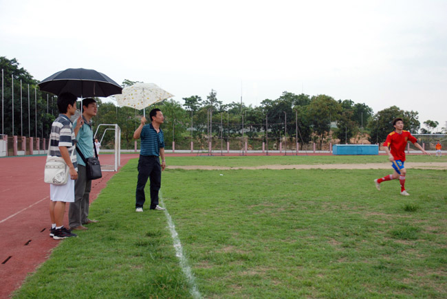 湛师新闻网5月11日讯 5月8日下午,音乐学院参加第十届“烛光杯”足球赛的第一场比赛,与数科院对决。音乐学院党委副书记黄增、辅导员谢锦江老师以及09级全体学生观看了球赛。