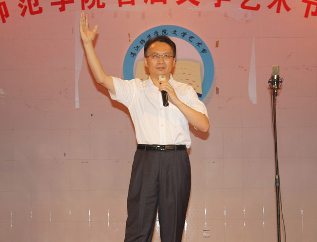 活动先由人文学院党委谢应明书记致词。他表示,文学艺术节可以展现人文学子的青春风采,检验办学质量,创新工作品牌。人文学院将按“党政工学一体化”模式,充分调动该院师生参加文学艺术节的积极性。