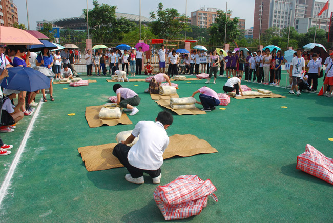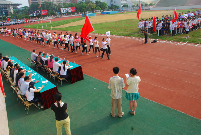 湛师新闻网5月10日讯 昨天上午,我校在雷阳新区田径运动场举行以“快乐运动,和谐家园”为主题的第二届学生公寓趣味运动会。学生处黄达海处长、钟莉萍副处长,体科院欧美珍副院长,学生公寓管理中心四位主任以及各二级学院辅导员,各苑区主管与助管老师等出席了运动会。