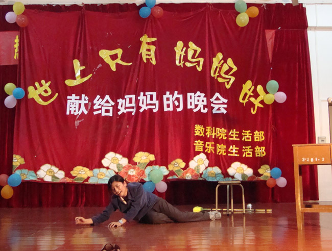本次活动在音乐学院的乐队演唱下拉开了序幕。接着,由数科院的同学为大家带来了一首《母亲颂歌》。听着这首歌曲,让在场的每一位同学,都想起了那个曾经把自己辛辛苦苦抚养长大的母亲。之后,由09音本1班的同学带来的一首歌曲《望月》,获得在场观众的一致好评。