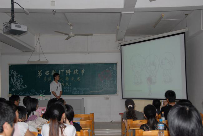 湛师新闻网5月9日讯 昨天下午,信息学院第四届IT科技节多媒体大赛决赛(DV,动漫组)在弘雷楼805教室举行。信息学院副院长张炜,陈晓辉副教授,张子石老师,张铭铎老师和06级教育技术系范梅兰、关荃玲同学作为评委出席了大赛。