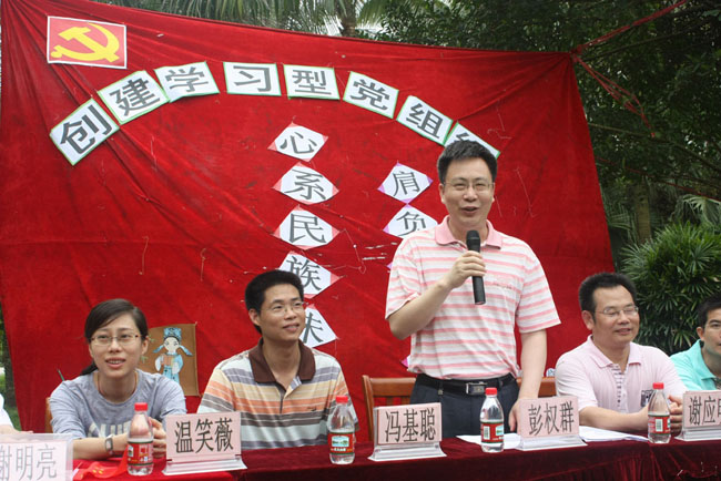 湛师新闻网5月8日讯 今天早上,人文学院党委在椰林组织召开了“创建学习型党组织·心系民族未来·肩负历史使命”主题党日活动。校党办彭权群主任、秘书科赵海波科长、机要科温笑薇副科长,人文学院党委谢应明书记、冯基聪副书记、辅导员老师以及党支部全体成员参加了活动。