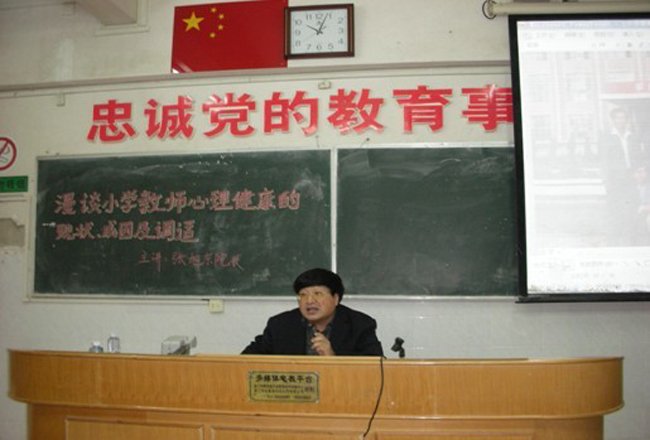 湛师新闻网5月7日讯 近日,教科院张旭东教授受到霞山区宝满小学和湛江市第十二小学的邀请,先后到这两所小学作了心理健康教育讲座。