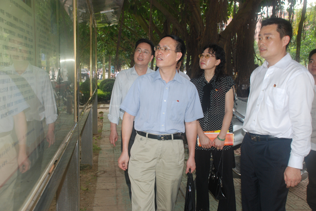 湛师新闻网5月7日讯 4日下午,学校党委梁英书记、张兰英副书记在校团委李粤书记的陪同下,来到咏雷楼旁边的宣传栏,观看了“2009—2010学年度我校团组织光荣榜”。