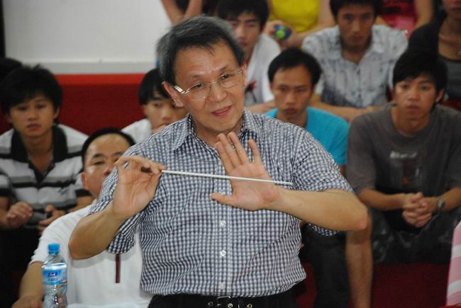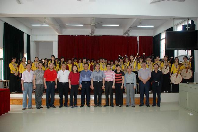 讲座现场,在萧炯柱先生的指挥下,他与该院周正基老师带领的08音本(2)班作为一支民乐团,共同演奏了一首歌曲——《故乡行》,以此将一位多年飘零在外的游子把久别回到故乡的感慨之情表现得淋漓尽致。