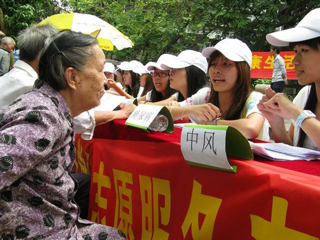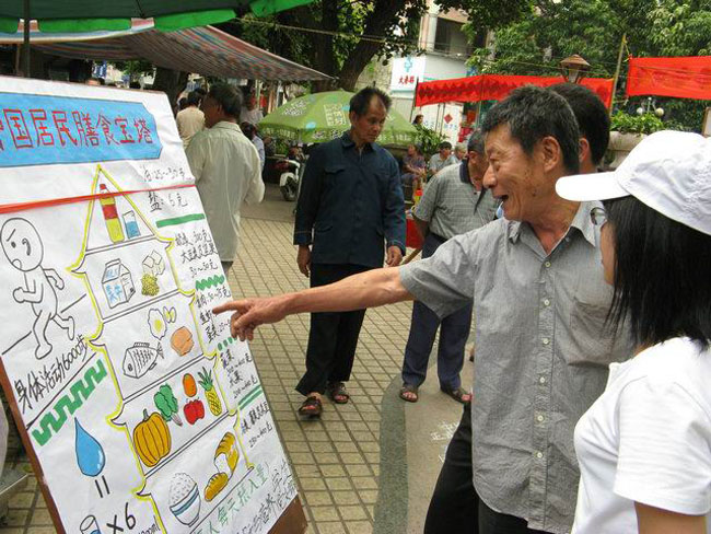 活动共设十个咨询方向,包括如何饮食预防中风、糖尿病、高血压等疾病,社区的许多群众根据自己身体的不同状况进行了针对性的咨询,学生党员态度热情、耐心回答,受到了广大群众的一致好评。烹饪营养系学生党员为此还发放相关资料。此外,学生党员们还积极向社会宣传了我国的的居民平衡膳食宝塔。