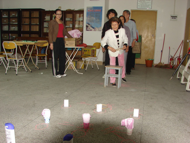 游园活动内容丰富多彩,有投圈、飞镖、定点投篮、纸飞机等项目。游园活动吸引了许多离退休同志参加,参加活动的老同志个个摩拳擦掌,等待一展身手。许多老同志爱好广泛,在参加一项活动得奖后又拎着奖品重新排队参加另一项目活动,忙得不亦乐乎。大家在游戏和谈笑中享受着节日的快乐,活动现场不时传来阵阵的掌声、笑声和欢呼声,整个游园区洋溢着浓浓的喜悦气氛。