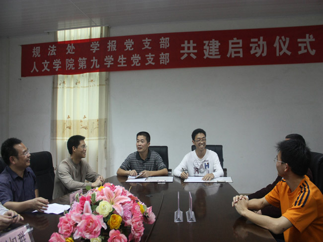 湛师新闻网4月29日讯 昨天下午,我校规法处、学报党支部与人文学院第九学生党支部在燕岭阁二楼工会会议室举行以“求真务实,永葆先进”为主题的共建活动启动仪式。我校李江凌副院长出席了活动启动仪式,参加活动的还有机关党委办公室彭权群主任、人文学院党委谢应明书记、学报常务副主编宋立民教授等,以及人文学院第九学生党支部成员。活动由规法处邱飞副处长主持。