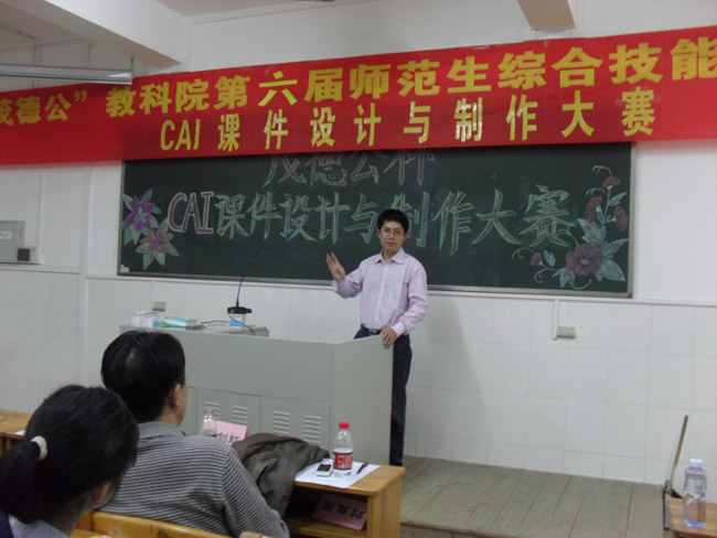 最后,郑剑虹副院长结合自身的经验指出了CAI课件的重要性,并提出课件要做到“图文并茂,动静结合”。他提醒同学们,课件不能脱离教学内容,要考虑可操作性,而CAI课件是教师教学的辅助工具,重点应放在让学生真正较快较好地学到知识,促进学生思维能力的发展。