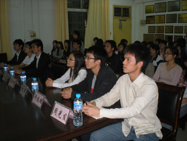 最后,陈艺和书记、林翠宣委对交流会进行了点评。他们肯定了活动选取的“低碳”、“房价”、“三农”、“就业”四个主题,与人民息息相关,并能够深入基层进行调研;称赞了同学们PPT制作的水平、相关电脑技术以及讲解过程中的语言分析并指出了其中的不足。