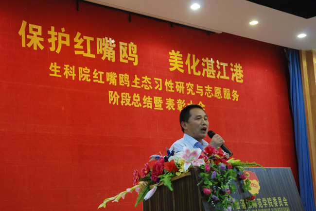 湛师新闻网4月26日讯 昨天下午,生科院在弘雷楼311室召开了红嘴鸥生态习性研究与志愿服务阶段总结暨表彰大会。生科院党委陈道海书记、主持行政全面工作的袁长春副院长、党委郑侯锦副书记、刘金祥副院长等出席了大会。