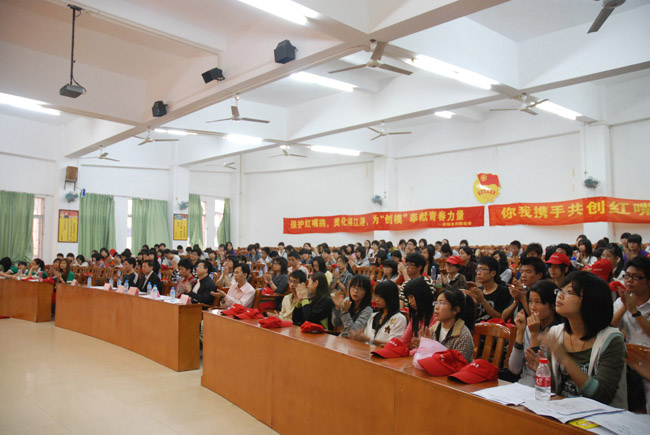大会上首先播放了“保护红嘴鸥护鸟活动”成果汇报DV。DV充分展示了生科院在志愿服务项目获得的丰硕成果及学生在志愿服务活动中的积极性。