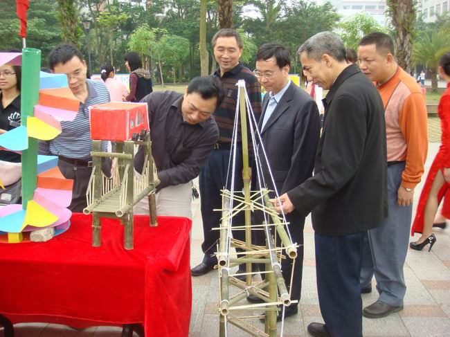 湛师新闻网4月26日讯 昨天上午,数科院在体育馆前举行了数学文化节特别活动——首届数学几何模型展示大赛、第四届宿舍海报、手抄报设计大赛,出席文化节开幕式的学校领导和老师们一起观看了作品展。