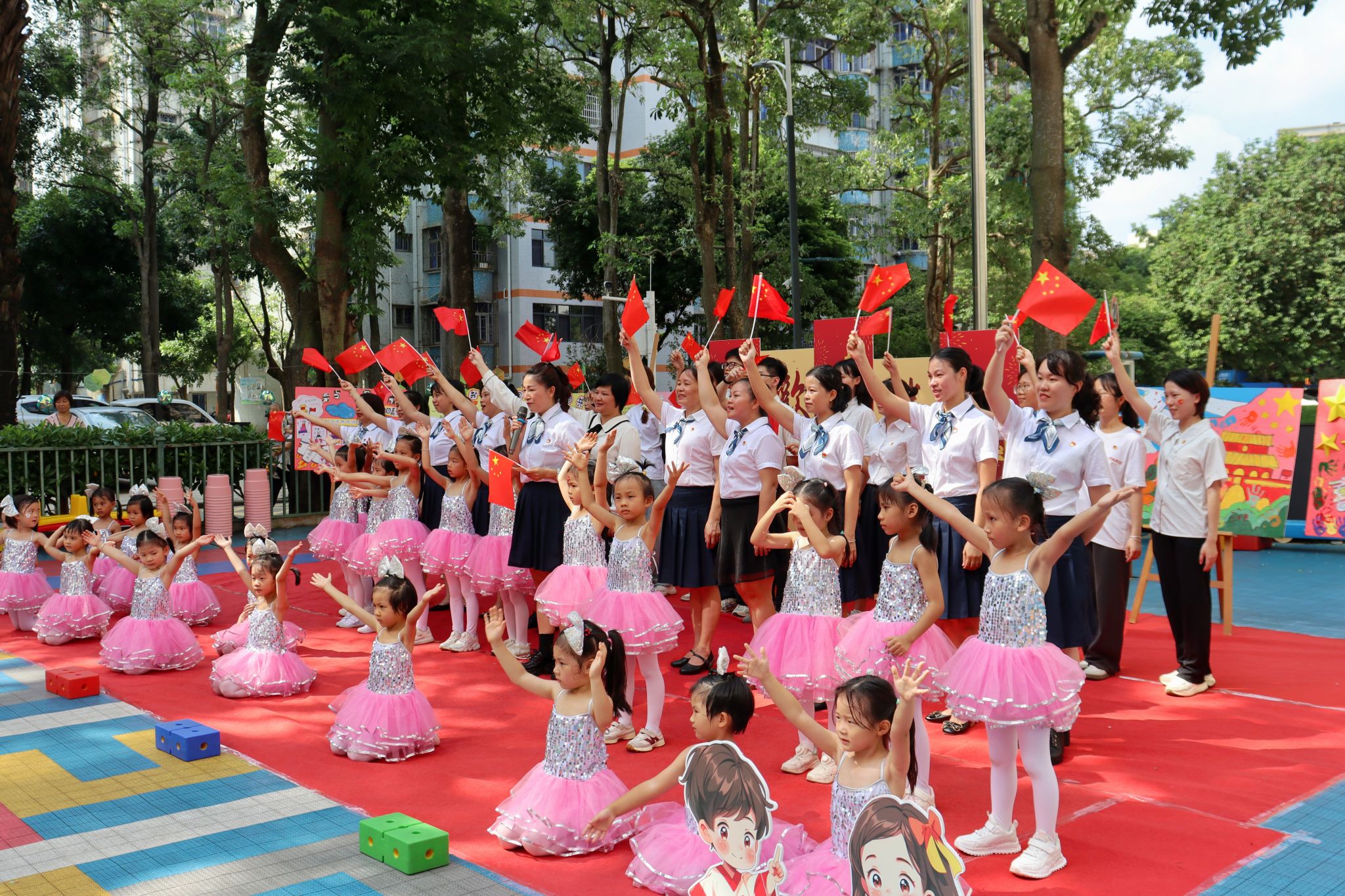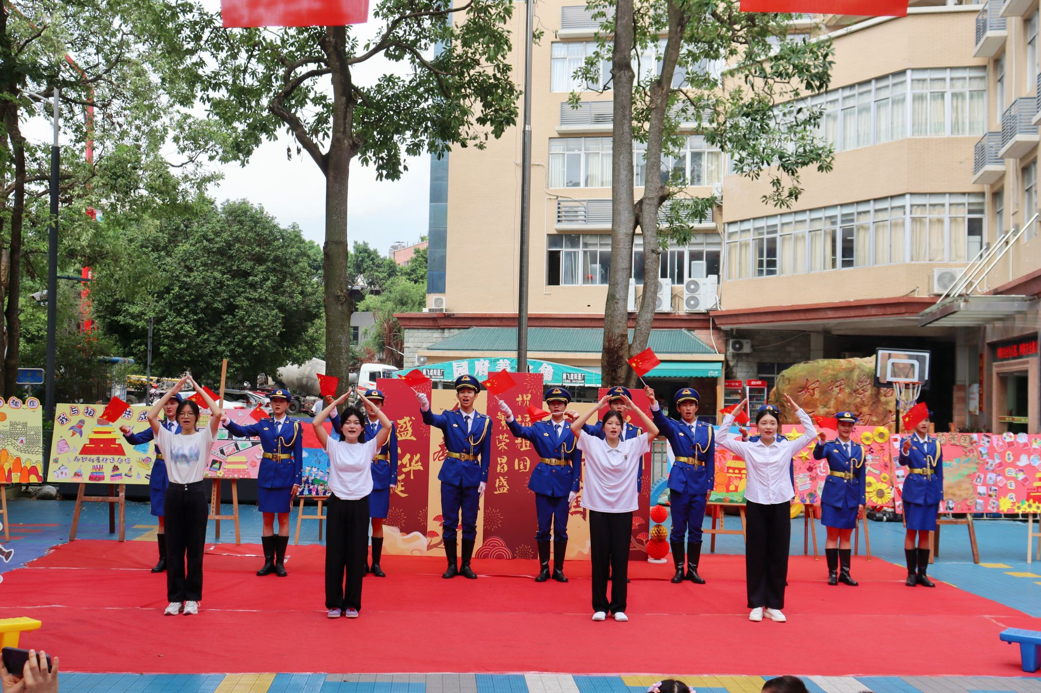 活动在雄壮的国歌声中拉开序幕,鲜艳的五星红旗冉冉升起,全体师生面向国旗肃立,齐声高唱国歌,表达对祖国的无限热爱与尊敬;校团委国旗班的大学生们以手势舞的形式演绎了歌曲《国家》,用肢体语言更深刻诠释了“家是最小国,国是千万家”的内涵;孩子们身着整齐的演出服站在舞台上,精神饱满、声音洪亮,用稚嫩清澈的童声歌唱《中国么么哒》、《祖国祖国我的家》、《红红的太阳》和《红太阳照山河》。伴随着悠扬的旋律,此次活动不仅让孩子们感受到集体合唱的团结与快乐,还在他们心中播下了热爱祖国、感恩生活的种子;小朋友们用稚嫩而真诚的歌声演绎了歌曲《党是太阳我是花》,歌声中充满了对祖国和党的美好祝愿;幼儿园的全体党员教师以及学校教育科学学院的实习生带来的《祖国不会忘记》,讴歌了那些默默奉献、为祖国繁荣昌盛做出巨大贡献的英雄们,激励在场的每一位师生铭记历史、不忘初心。活动在全体师生大合唱的《歌唱祖国》歌声中结束,师生共同歌唱祖国的繁荣昌盛与光辉历程,从硝烟散尽的和平曙光,到如今国富民强的盛世图景,在歌声中感受和平的美好,唱出心中对国家的热爱与自豪。