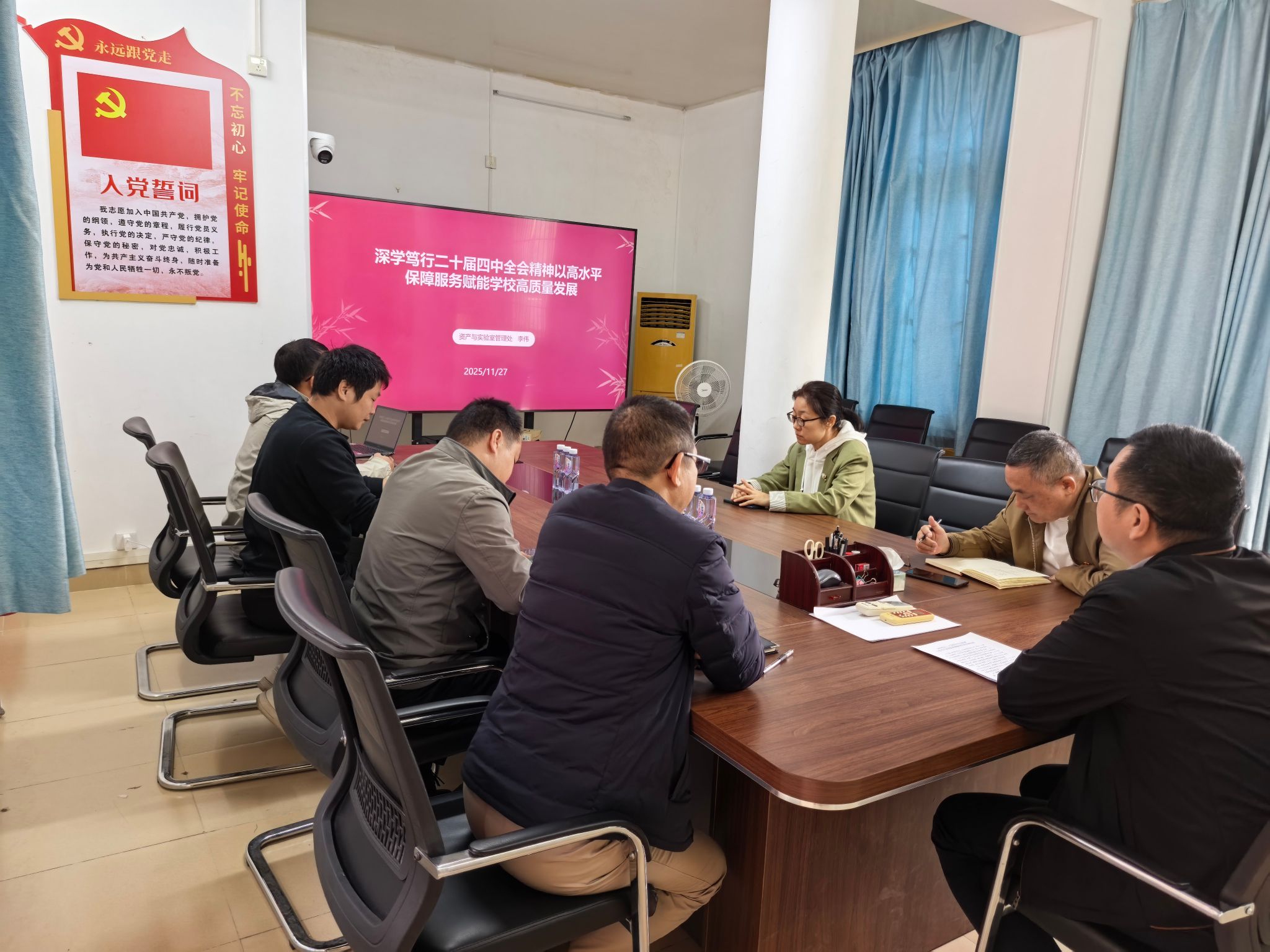 为推动党的二十届四中全会精神在基层落地生根、见行见效,11月27日,资产与实验室管理处党支部以专题党课形式,组织全体党员围绕“深学笃行党的二十届四中全会精神,以高水平保障服务赋能学校高质量发展”主题开展集中学习,凝聚思想共识、明确实践路径,切实把学习成果转化为服务学校高质量发展的强大动力。