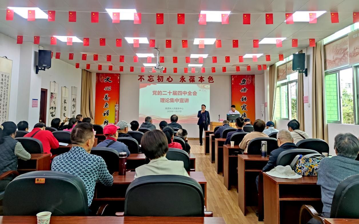 为深入学习贯彻党的二十届四中全会精神,引导离退休老同志准确把握会议核心要义与实践要求,11月27日下午,离退休人员服务中心党委组织开展党的二十届四中全会精神专题宣讲会。学校马克思主义学院朱培源博士受邀作宣讲报告,50余名离退休老同志、离退休党委委员及党支部书记齐聚一堂聆听学习。宣讲会由离退休人员服务中心党委书记欧海清主持,学校原副校长刘周堂同志出席会议。
