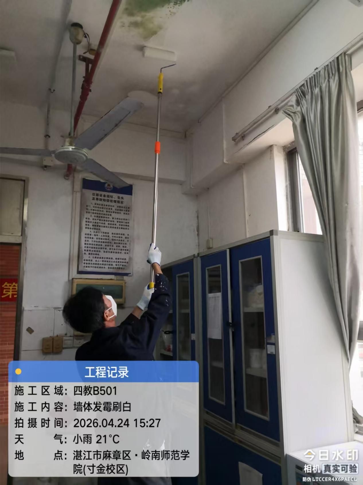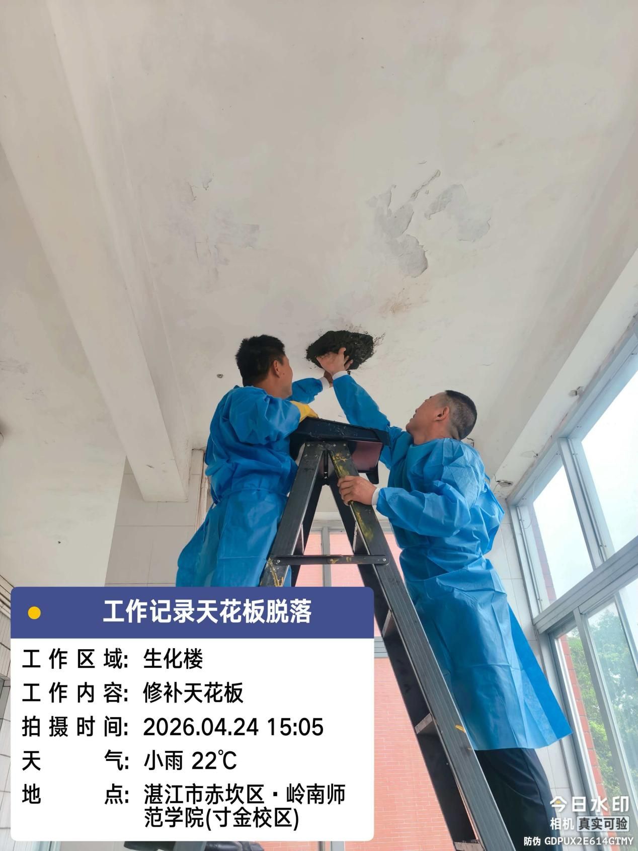 活动前期,支部全面排查梳理出教学楼、实验室、宿舍楼等10处急需修缮点位,提前备齐维修工具与材料,细化人员分组与作业方案,为高效开展修缮工作奠定坚实基础。活动现场,在党总支委员带头示范下,全体人员按分工奔赴化学化工学院、第四教学楼、生化楼、体科院尚德苑、新艺术楼等具体点位,对地砖翘起、墙体漏水、墙砖脱落、顶部破损等问题开展集中整治。全体党员干部在各自岗位争分夺秒、尽心竭力,严格遵守安全操作规程,规范做好现场记录与安全防护,以实际行动影响和带动青年党员与职工群众干事创业活力,在平凡岗位上践行初心使命。