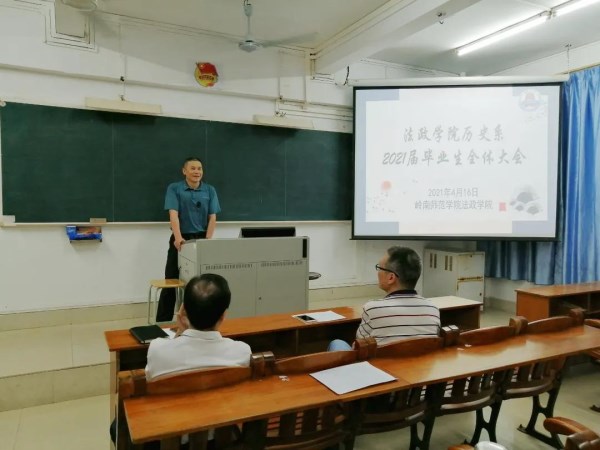 为更好帮助历史系毕业生解决就业困难问题,进一步推进毕业生高质量就业,4月16日晚,法政学院于弘雷楼203室召开了历史系2021届毕业生全体大会,该院院长刘鑫淼、党委副书记叶德波、于卫青副院长、历史系景东升主任、辅导员张博老师以及全体历史系毕业生出席了本次会议。会议由叶德波副书记主持。