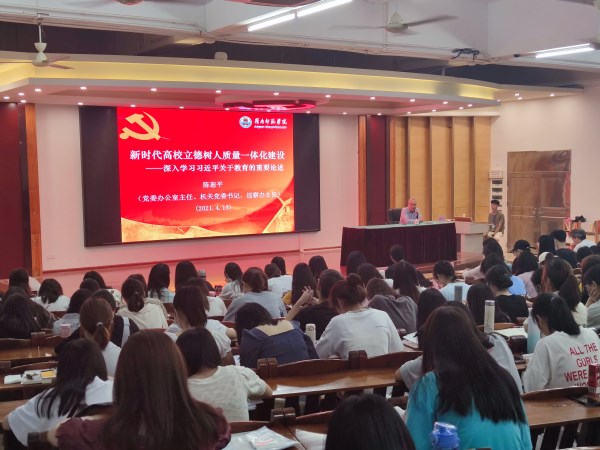 陈恕平围绕“新时代高校立德树人质量一体化建设——深入学习习近平总书记关于教育的重要论述”这一主题,从五大方面展开讲述。他表示习近平总书记关于教育的重要论述是新时代建设教育强国的根本遵循,可概括为“一条主线、三个方面、九个坚持”,立德树人是教育的根本任务,坚持立德树人这一根本任务,是高校的立身之本;要培养担当民族复兴大任的时代新人和德智体美劳全面发展的社会主义建设者和接班人,“培养什么样的人”,包含本质属性、角色定位、素质结构三重意蕴,是教育方针的首要问题;为党育人、为国育才是高校的根本立场。他认为高校要坚守这一立场,要践行教育初心使命,要做到“四个服务”。关于办学治校的根本途径,要通过整合教育,推进三全育人,结合四大体系,实施五育并举,贯通各阶段教育,统一十大育人体系。
