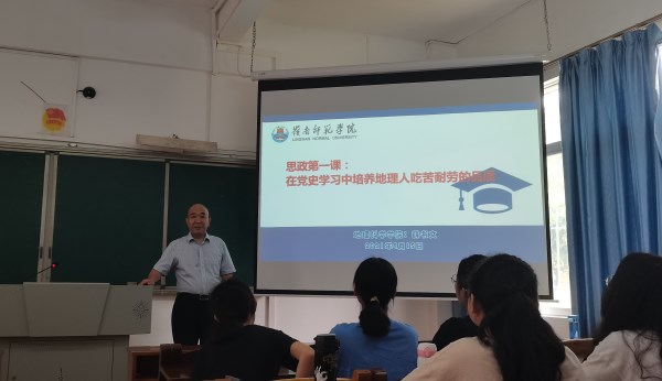 4月15日,地理科学学院组织2020级地理信息科学班全体同学于教三106室开展思政第一课,课程由学院薛书文院长主讲。