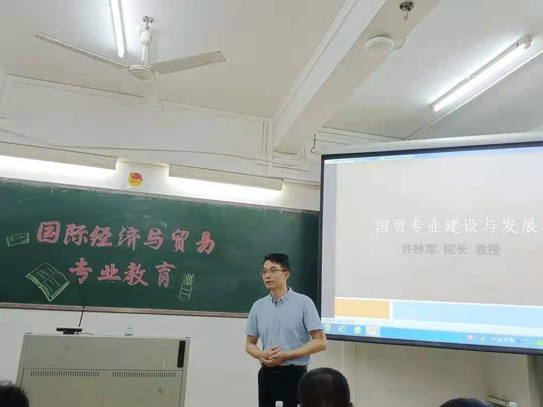 4月19日晚,商学院于燕雷楼c栋302教室开展“国际经济与贸易专业教育”讲座。商学院院长许抄军、经济系全体老师出系本次活动。讲座由副系主任曹坤华老师主持。