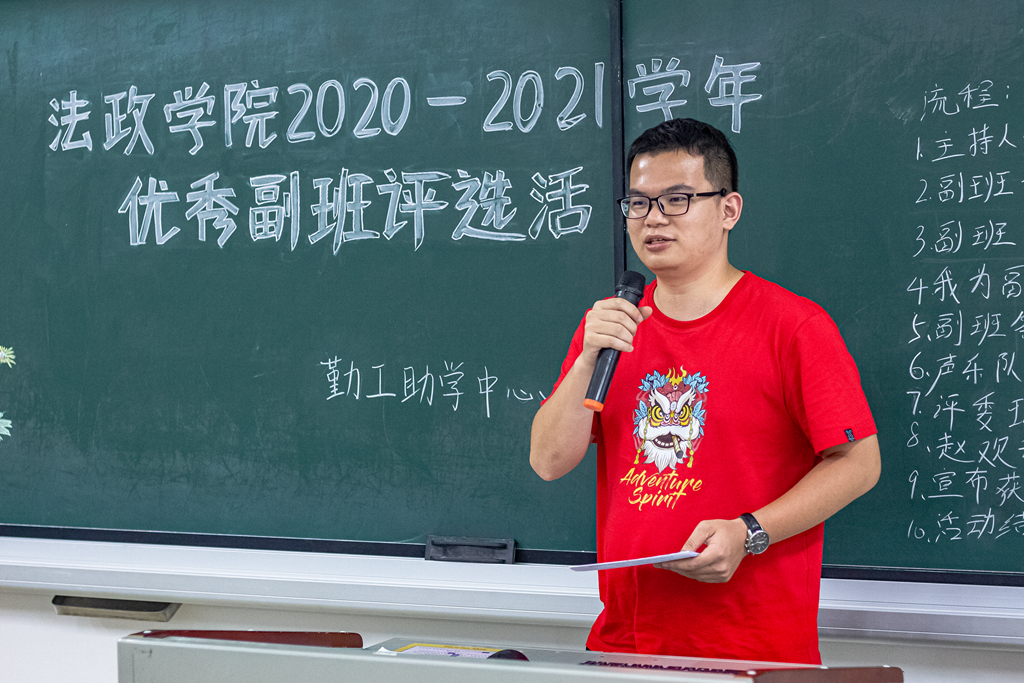 赵欢指出,副班是班委中低调而重要的角色,更是学院学风建设与班级建设中不可或缺的重要一环。他通过引导大家思考“为什么要当副班”的问题,告诫同学们当热情退却,坚守的就是责任、情怀与爱,面对今后的学习与生活,更要做到不忘初心,回归本真。同时,他还号召各位副班铭记“助人自助”的工作理念,见贤思齐,积极配合法政学院勤工助学中心的工作,为广大同学树立好模范作用。