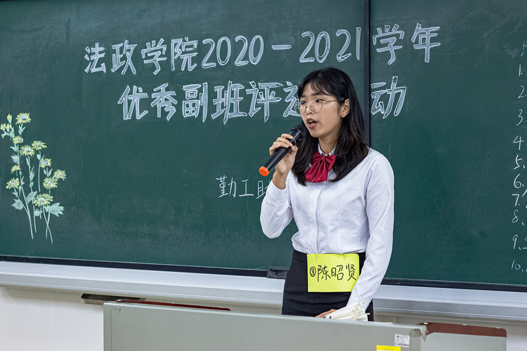 为进一步加强副班作风建设,展现副班魅力,4月24日晚,法政学院于弘雷楼705室举办了以“创管理新风,展副班风采”为主题的优秀副班评选活动。法政学院勤工助学中心指导老师赵欢、勤工助学中心正职负责人吴可嘉、就业服务中心正职负责人黄剑转、团委副职负责人林茵淇、学生会副职负责人余秋妍、宣传中心副职负责人叶洁余、勤工助学中心副职负责人陆怡欣以及各二级学院勤工助学中心干部代表出席了本次活动。