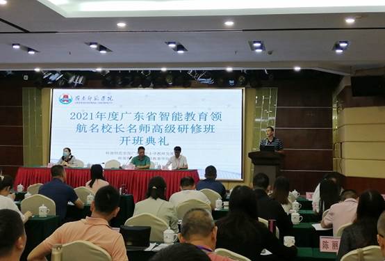 10月11日上午,2021年智能教育领航名校长名师高级研修班开班典礼在湛江市海洋国际酒店会议室顺利举行。岭南师范学院广东省中小学教师发展中心副主任(主持)、教师教育学院副院长(主持)王林发参加典礼并作讲话。典礼由项目班主任梁光明主持。