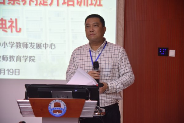 教师教育学院副院长陈小亘出席本次活动并作讲话致辞,会上,他鼓励学员们积极提出宝贵意见,学员之间加强联系,希望学员未来事业顺利平安健康。
