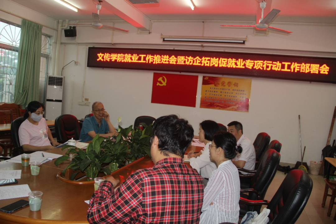 6月8日,文学与传媒学院召开了由院领导班子成员、各系正副主任参加的就业推进会。会议在教三会议室举行,专门就就业工作暨访企拓岗促就业专项行动工作作了布置。文传学院党委书记陈凯珍主持会议。