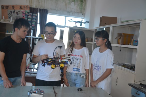 指导自动化爱好者协会学生如何将四轴无人机与智能小车有机结合,开发新产品。